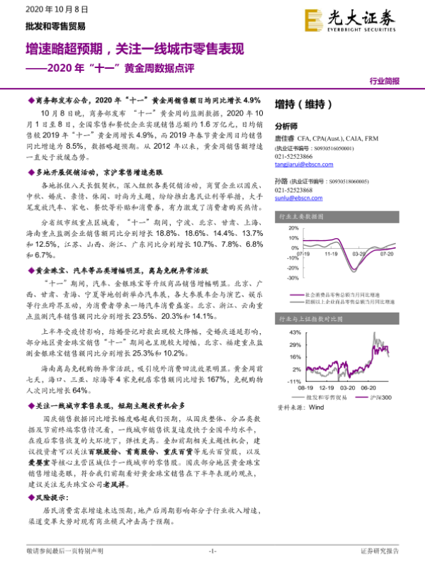【光大证券】【20201008】批发和零售贸易2020年“十一”黄金周数据点评-3页 行业研究