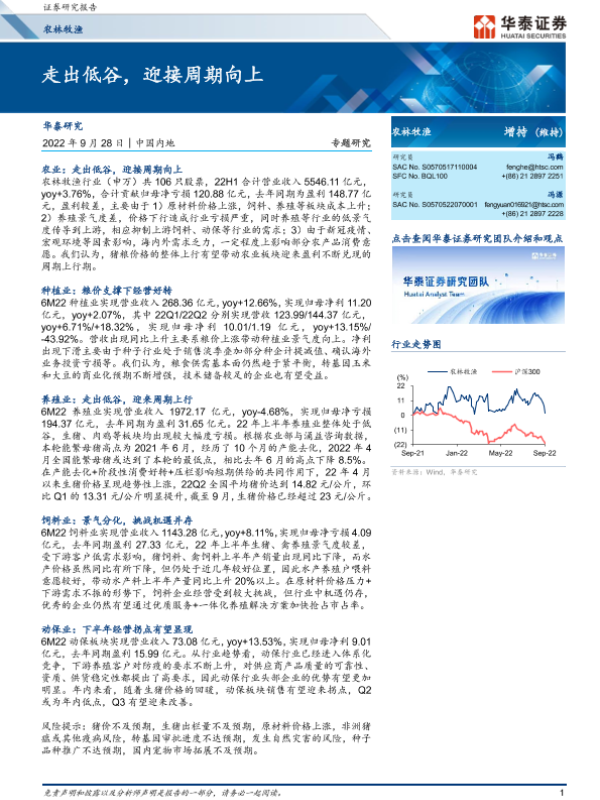 【华泰证券】【20220928】农林牧渔行业专题研究:走出低谷,迎接周期向上-28页 行业研究