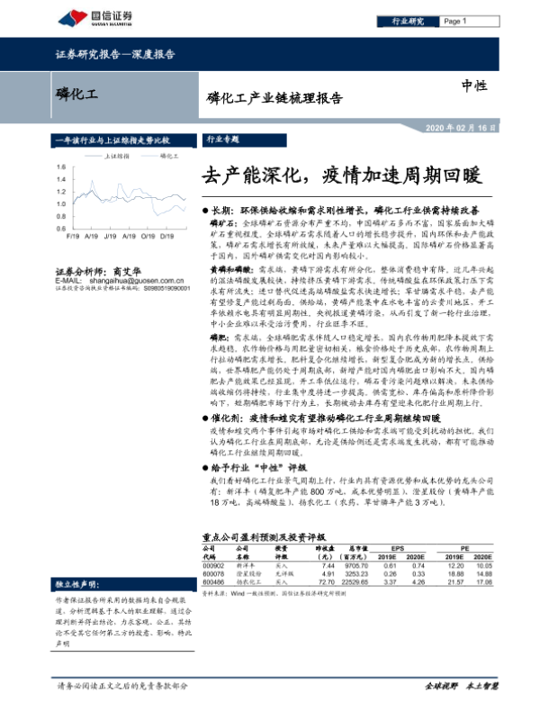 【国信证券】【20200216】磷化工产业链梳理报告:去产能深化,疫情加速周期回暖-48页 行业研究