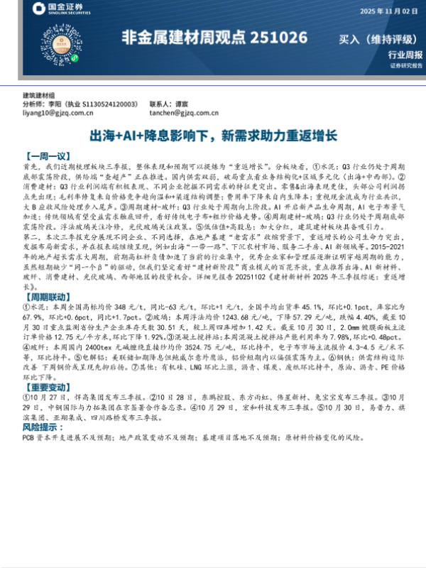 【国金证券】【202511】非金属建材周观点:出海+AI+降息影响下,新需求助力重返增长-18页 证券期货研究报告