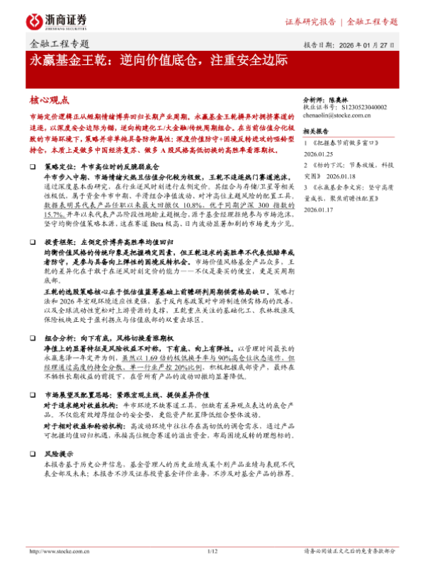 【浙商证券】【202601】永赢基金王乾_逆向价值底仓_注重安全边际-12页 证券期货研究报告