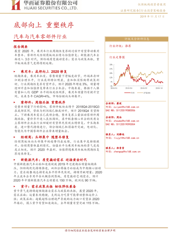 【华西证券】【20191117】汽车与汽车零部件行业:底部向上 重塑秩序-64页 行业研究