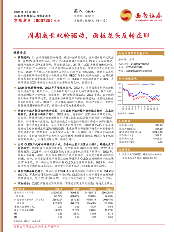 【西南证券】【20230109】深度报告-20230109-西南证券-京东方A-周期成长双轮驱动_面板龙头反转在即-36页 行业研究
