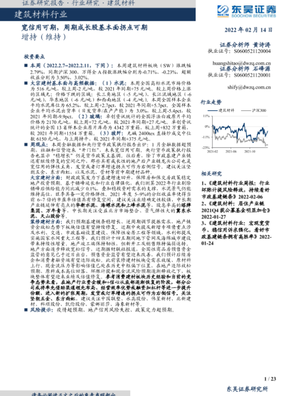 【东吴证券】【20220214】建筑材料行业:宽信用可期,周期成长股基本面拐点可期-23页 行业研究