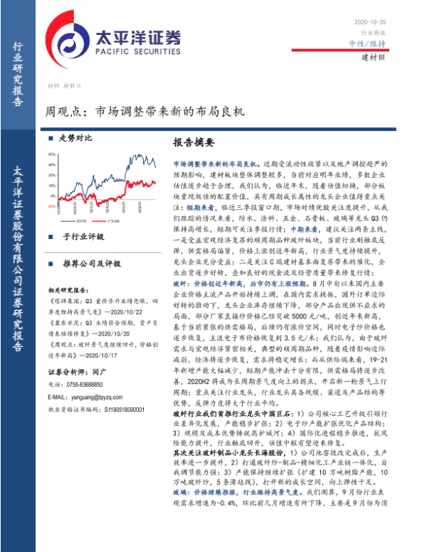 【太平洋证券】【20201025】建材Ⅲ周观点:市场调整带来新的布局良机-18页 行业研究