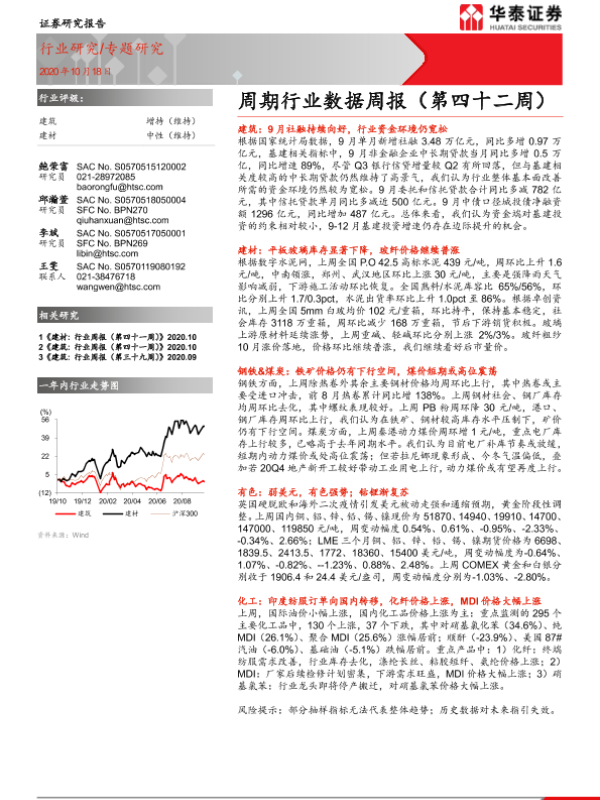 【华泰证券】【20201018】建筑建材周期行业数据周报(第四十二周)-48页 行业研究