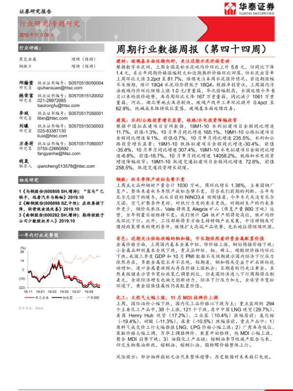 【华泰证券】【20191104】20191104-华泰证券-钢铁Ⅱ周期行业数据周报(第四十四周)-39页 行业研究