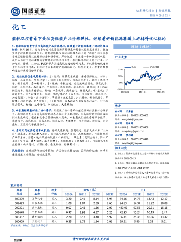 【国盛证券】【20210922】化工行业周报:能耗双控背景下关注高耗能产品价格弹性,继续看好新能源赛道上游材料核心标的-11页 行业研究