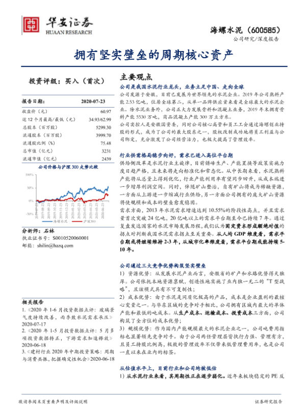 【华安证券】【20200723】拥有坚实壁垒的周期核心资产-43页 行业研究