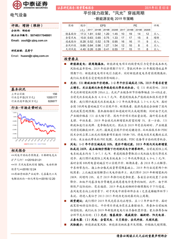 【中泰证券】【20190103】新能源发电2019年策略:平价接力政策,“风光”穿越周期-35页 行业研究