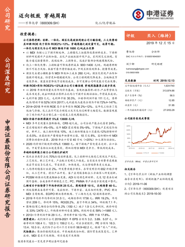 【申港证券】【20191215】迈向极致 穿越周期——万华化学(600309.SH)-50页 行业研究