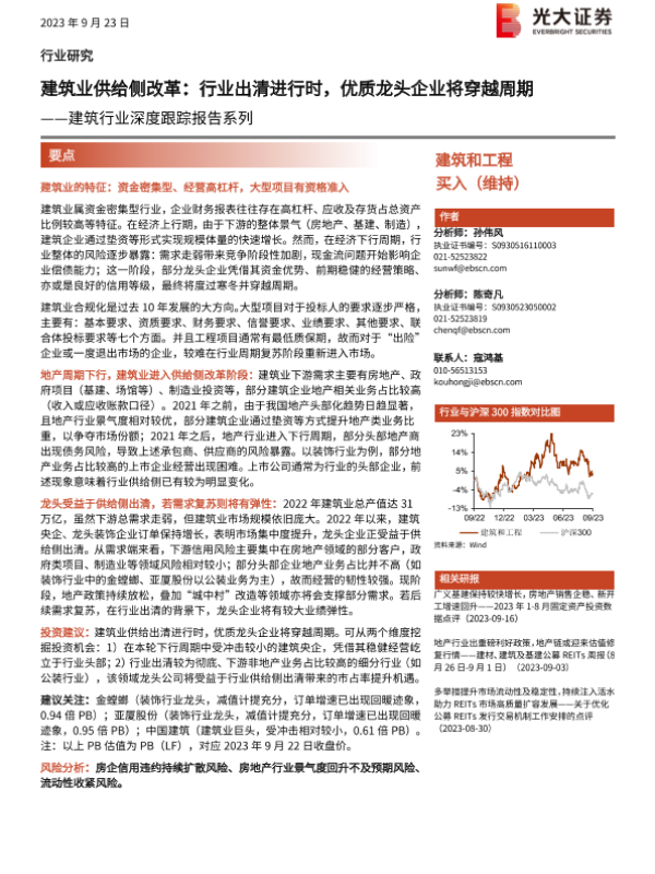 【光大证券】【20230923】建筑行业深度跟踪报告系列:建筑业供给侧改革,行业出清进行时,优质龙头企业将穿越周期-22页 行业研究