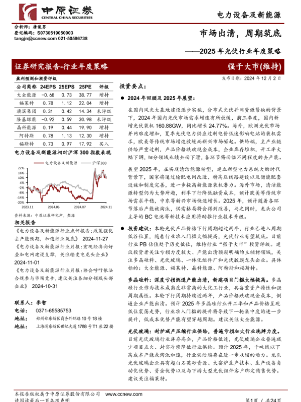 【中原证券】【20241202】2025年光伏行业年度策略:市场出清,周期筑底-24页 行业研究