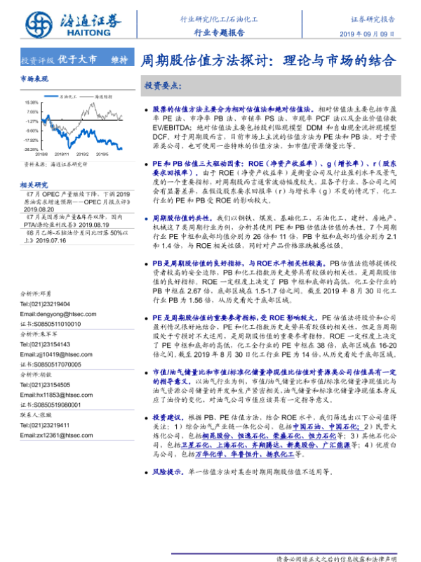 【海通证券】【20190909】石油化工行业专题报告:周期股估值方法探讨,理论与市场的结合-23页 行业研究