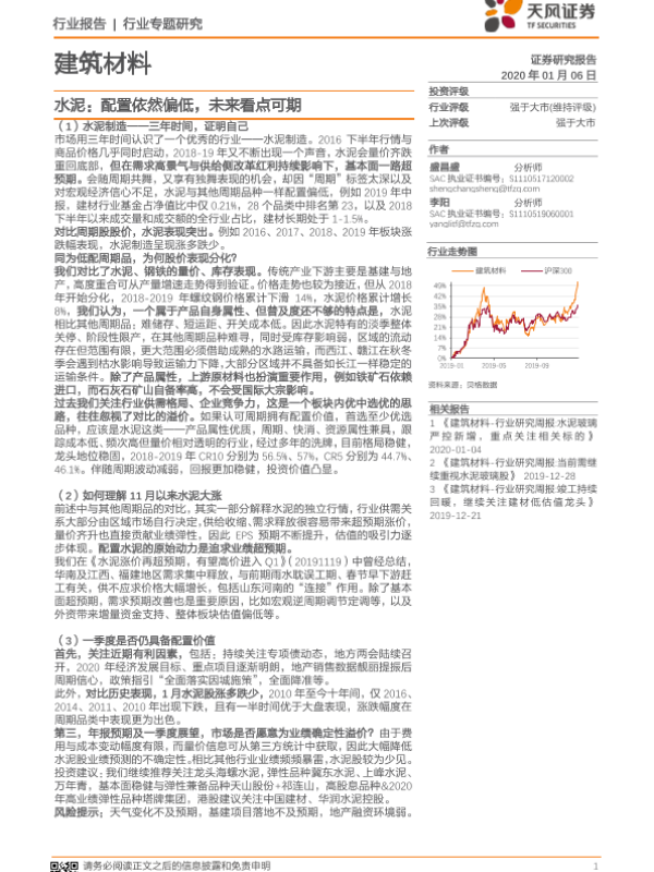 【天风证券】【20200106】水泥行业专题研究:配置依然偏低,未来看点可期-10页 行业研究