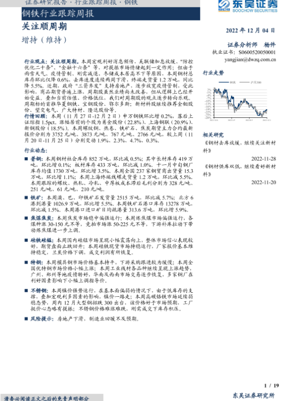 【东吴证券】【20221204】钢铁行业跟踪周报:关注顺周期-19页 行业研究