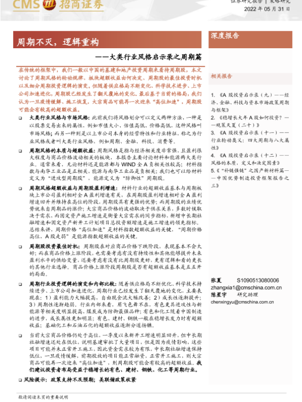 【海通证券】【20220531】大类行业风格启示录之周期篇:周期不灭,逻辑重构-27页 行业研究