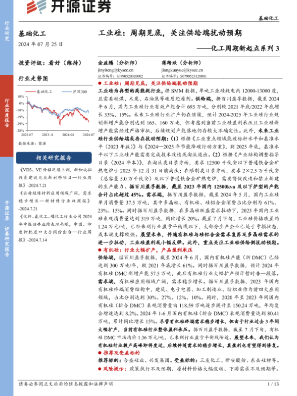 【开源证券】【20240725】化工周期新起点系列3:工业硅:周期见底,关注供给端扰动预期-13页 行业研究