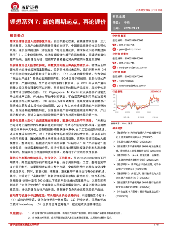 【五矿证券】【20200921】锂想系列7:新的周期起点,再论锂价-6页 行业研究