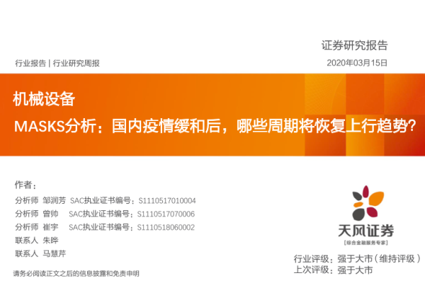 【天风证券】【20200315】20200315-天风证券-机械设备行业研究周报:MASKS分析:国内疫情缓和后,哪些周期将恢复上行趋势?-14页 行业研究