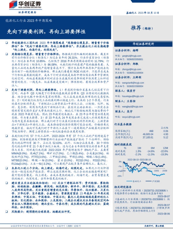 【华创证券】【20230810】能源化工行业2023年中期策略:先向下游要利润,再向上游要弹性-111页 行业研究