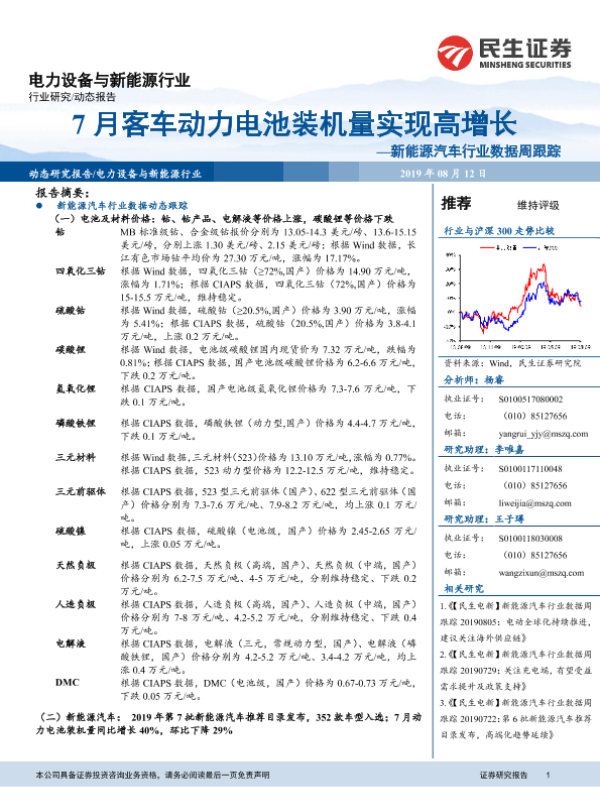 【民生证券】【20190812】20190812-民生证券-新能源汽车行业数据周跟踪:7月客车动力电池装机量实现高增长-15页 行业研究
