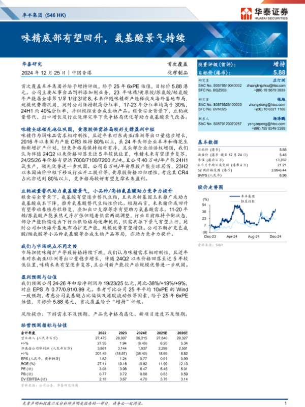 【华泰证券】【20241225】阜丰集团(0546.HK)味精底部有望回升,氨基酸景气持续-25页 行业研究