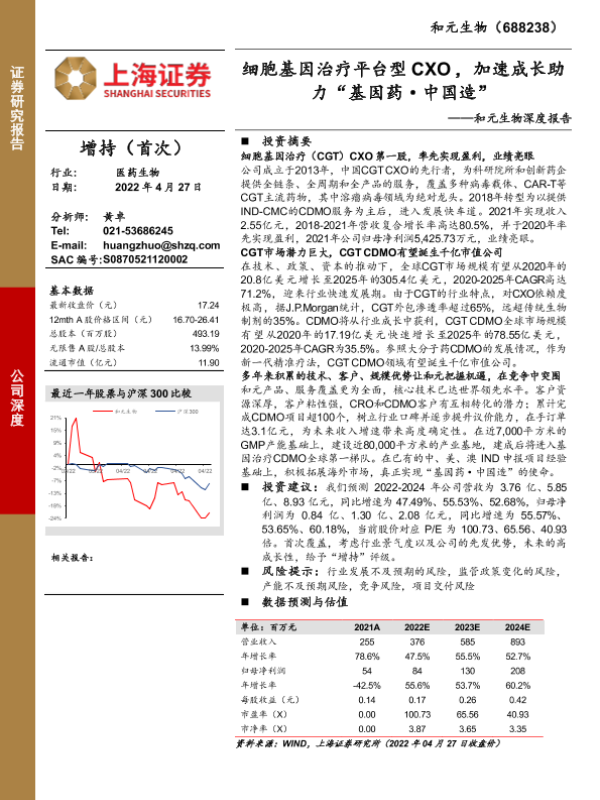【上海证券】【20220427】和元生物深度报告:细胞基因治疗平台型CXO,加速成长助力“基因药·中国造”-30页 行业研究