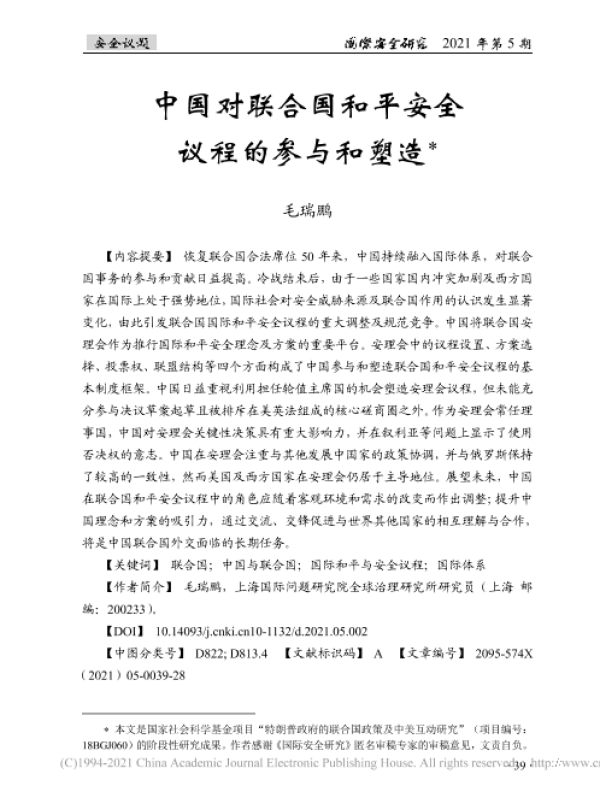 【上海国际问题研究院】【20210101】中国对联合国和平安全议程的参与和塑造-29页 行业研究