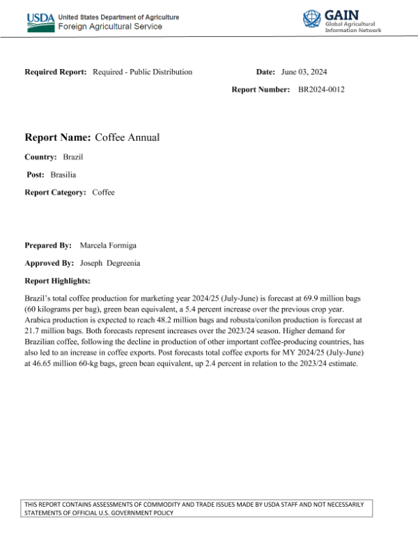 【USDA】【20240603】Coffee Annual-18页 行业研究