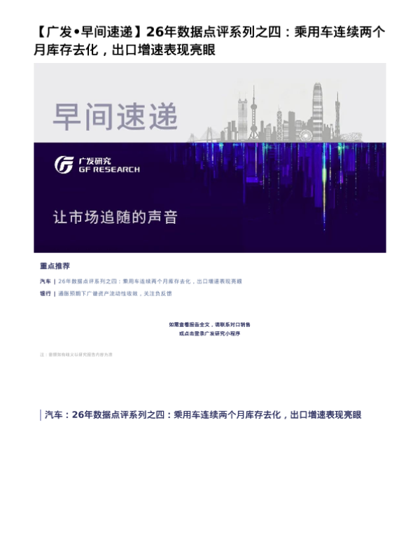 【广发证券】【202603】26年数据点评系列之四:乘用车连续两个月库存去化,出口增速表现亮眼-5页 证券期货研究报告