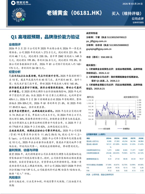 【国金证券】【202603】20260324-国金证券-老铺黄金-06181.HK-Q1高增超预期_品牌涨价能力验证-4页 证券期货研究报告