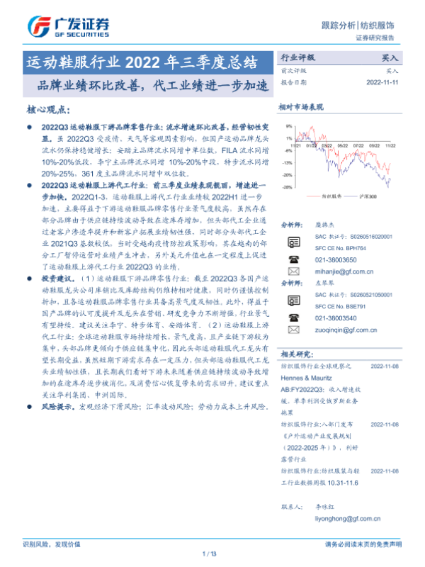 【广发证券】【20221111】运动鞋服行业2022年三季度总结:品牌业绩环比改善,代工业绩进一步加速-13页 行业研究