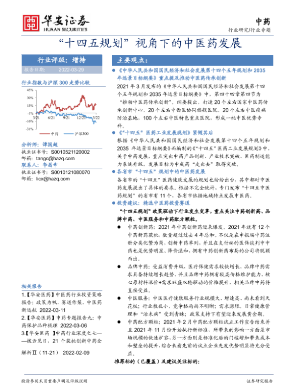 【华安证券】【20220329】“十四五规划”视角下的中医药发展-11页 行业研究