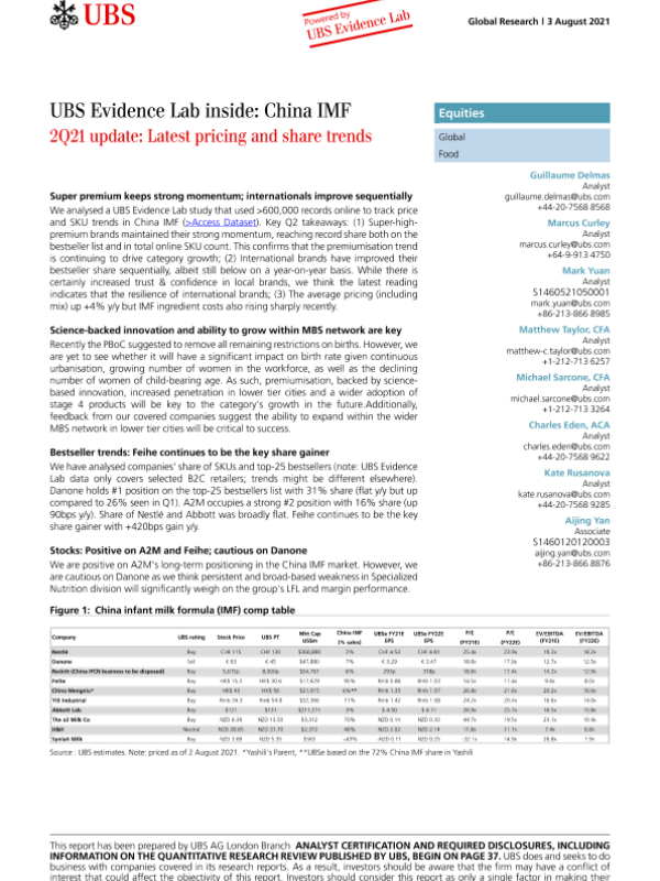 【瑞银】【20210803】瑞银-全球食品行业-2021年第二季度更新:最新定价和股票走势-44页 行业研究