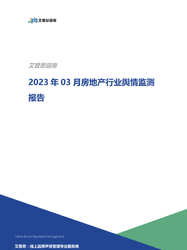【艾普思咨询】【20230423】2023年03月房地产行业舆情监测报告-15页 行业研究