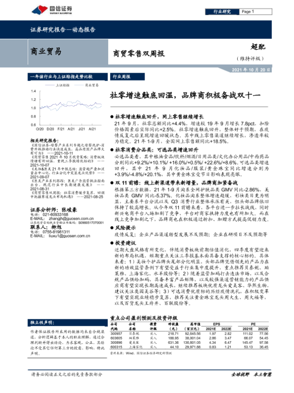 【国信证券】【20211020】商贸零售双周报:社零增速触底回温,品牌商积极备战双十一-10页 行业研究