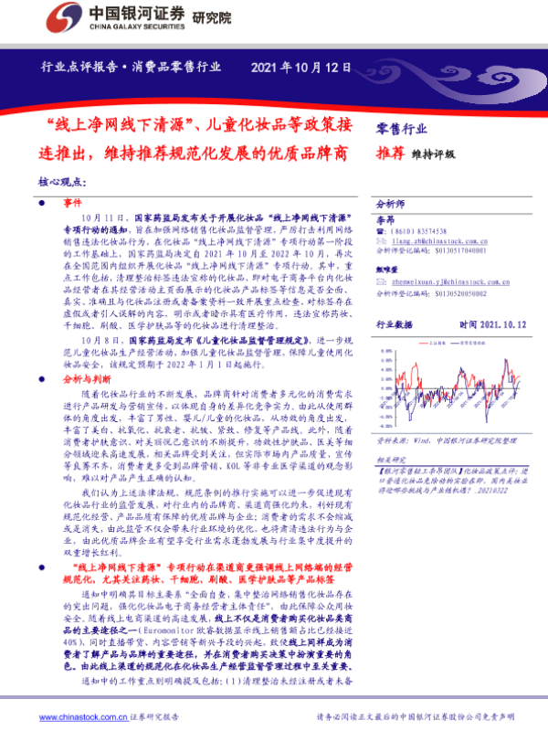 【银河证券】【20211012】零售行业:“线上净网线下清源”、儿童化妆品等政策接连推出-6页 行业研究