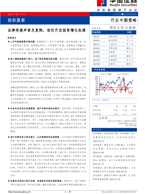 【华金证券】【20200615】20200615-华金证券-纺织服装行业中期策略:品牌承接声誉及复购,信任开启国货增长机遇-37页 行业研究
