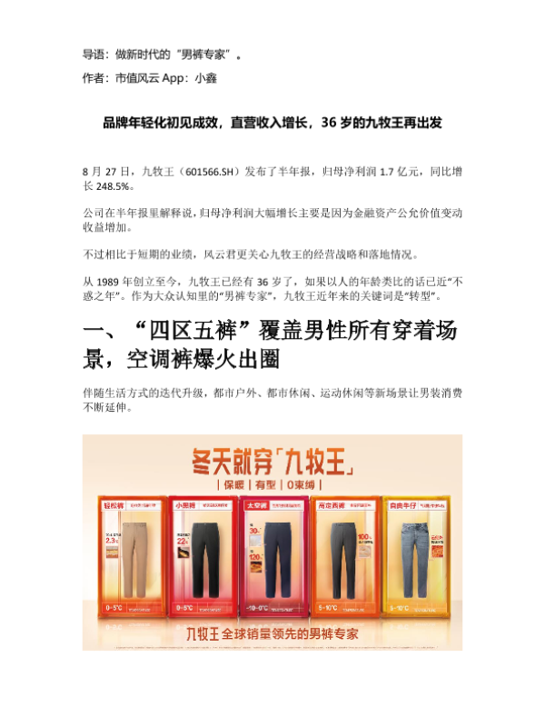【市值风云 App 小鑫】【20250828】九牧王-品牌年轻化初见成效_直营收入增长_36岁的九牧王再出发-7页 公司研究