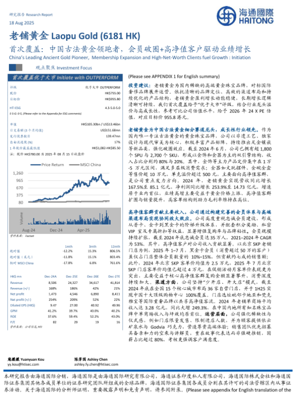 【海通国际】【202508】首次覆盖:中国古法黄金领跑者,会员破圈+高净值客户驱动业绩增长-43页 证券期货研究报告