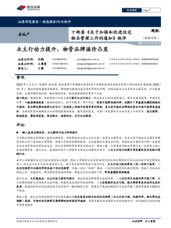 【国信证券】【20210106】关于加强和改进住宅物业管理工作的通知快评-9页 行业研究