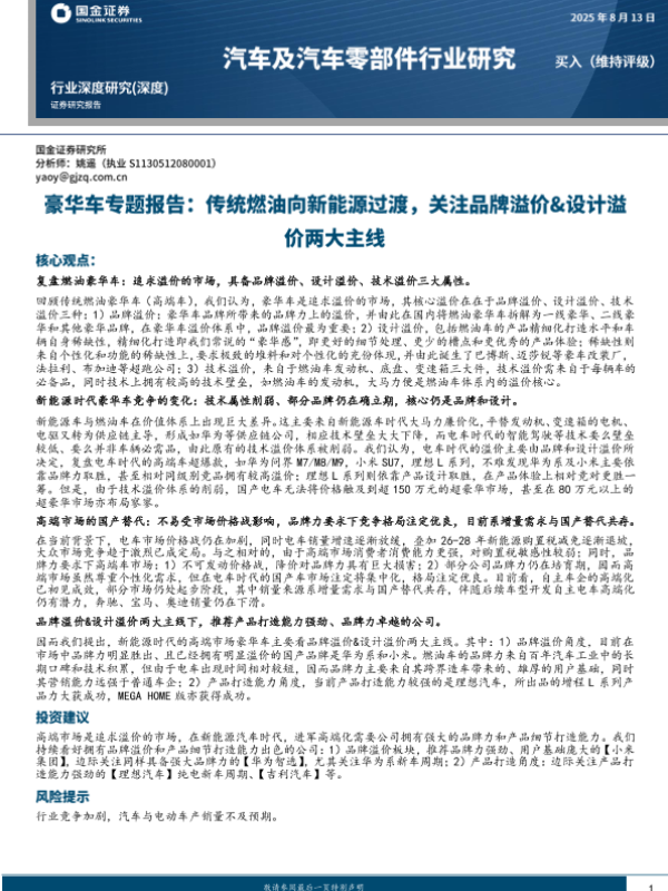 【国金证券】【20250813】汽车及汽车零部件行业研究:豪华车专题报告-传统燃油向新能源过渡,关注品牌溢价&设计溢价两大主线-31页 证券期货研究报告