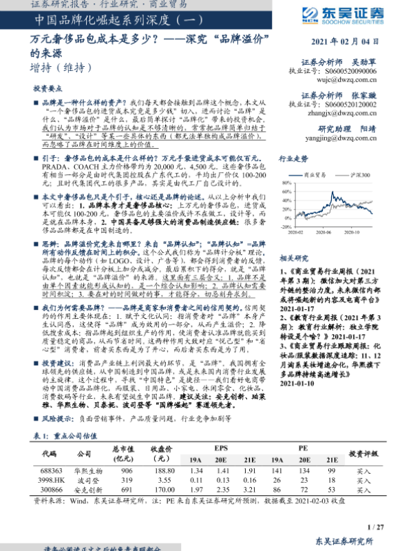 【东吴证券】【20210204】中国品牌化崛起系列深度(一):深究“品牌溢价”的来源-27页 行业研究