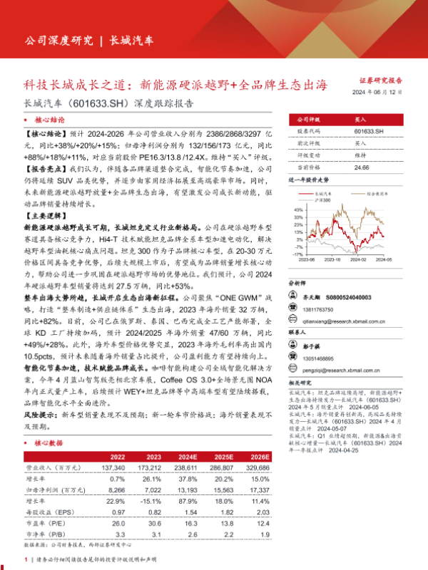 【西部证券】【20240612】长城汽车(601633)深度跟踪报告:科技长城成长之道,新能源硬派越野+全品牌生态出海-57页 行业研究
