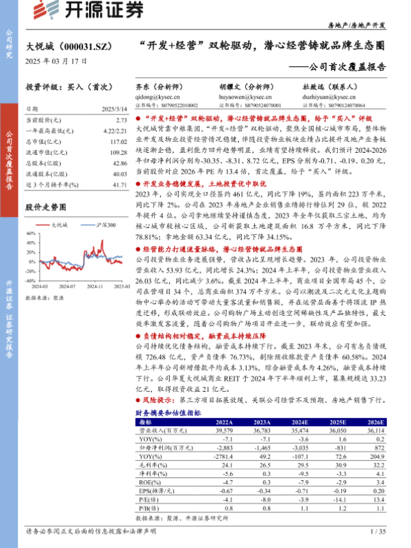 【开源证券】【20250317】大悦城-公司首次覆盖报告:“开发+经营”双轮驱动,潜心经营铸就品牌生态圈-35页 公司研究