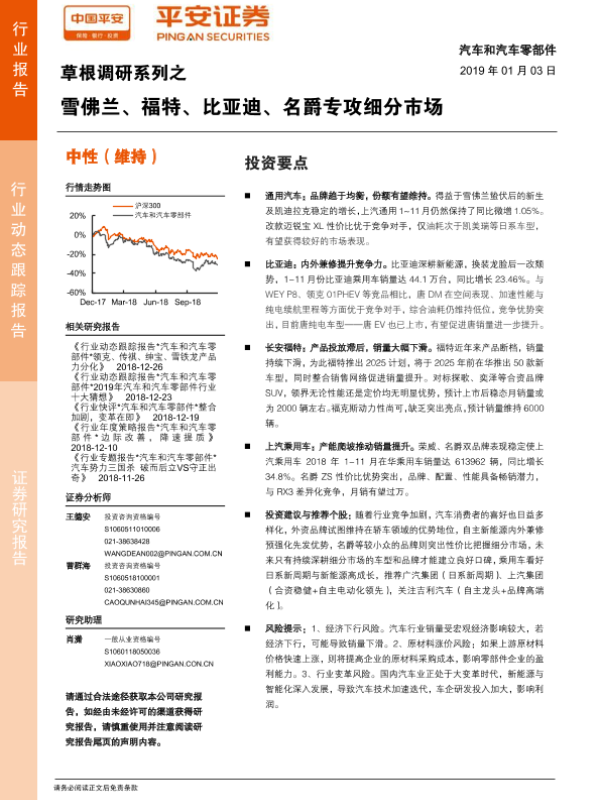 【平安证券】【20190103】汽车和汽车零部件草根调研系列之雪佛兰、福特、比亚迪、名爵专攻细分市场-19页 行业研究