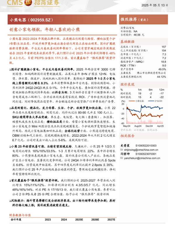 【海通证券】【20250513】小熊电器创意小家电领航,年轻人喜欢的小熊-18页 公司研究