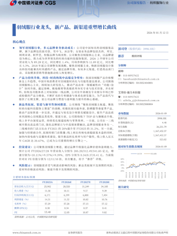 【银河证券】【202601】羽绒服行业龙头,新产品、新渠道重塑增长曲线-32页 证券期货研究报告