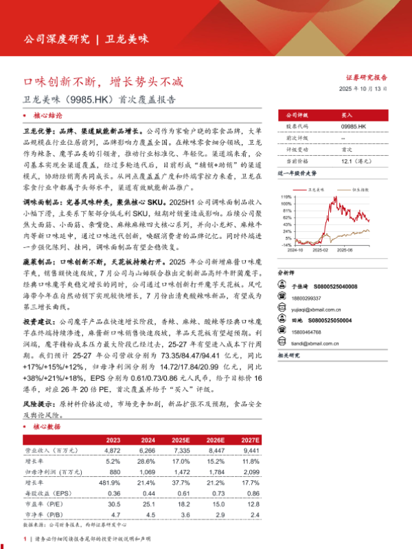 【西部证券】【202510】卫龙美味(9985.HK)首次覆盖报告:口味创新不断,增长势头不减-22页 证券期货研究报告